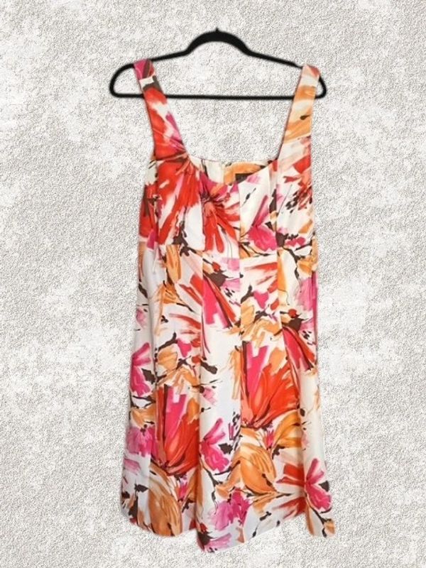 The Vibrant Floral Sleeveless Dress by R&M Richards is a stylish and colorful option for a party or cocktail event. This knee-length dress features a vibrant floral pattern in a multicolor design, with a sleeveless style and a zip closure for easy wear. Made of polyester, this dress is perfect for the summer and spring seasons. It is a regular size 16, designed for women looking for a sundress with a floral theme that adds a touch of elegance to any occasion.